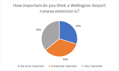 64 candidates replied to the questionnaire out of 106 standing, giving a response rate of 60%. Of the candidates who answered, there was a roughly even split on the question of “How important is the Wellington Airport runway extension?”, with 30% rating it not at all important, 34% somewhat important and 36% very important.